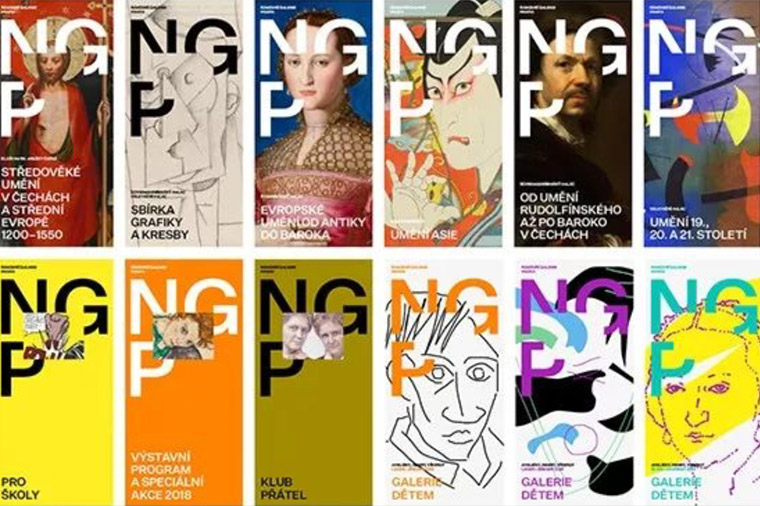 Národnígalerie v Praze(“布拉格国家美术馆”,简称“NGP”)成立于1796年,前身为布拉格画廊, 是捷克最大、最重要的艺术殿堂。捷克国家美术馆分别设有捷克斯洛伐克历史时期的美术陈列馆、欧洲古代美术陈列馆、欧洲中世纪美术陈列馆、捷克斯洛伐克雕塑陈列馆。2017年底,布拉格国家美术馆与CZECHDESIGN(该协会帮助客户找到设计师并组织比赛)合作发布新标识设计比赛。他们邀请了十家工作室参加,基于国家美术馆作为一个艺术展示空间的意义和使命建立一个独特的设计,最终Najbrt Studio工作室成为获胜者,他们的提案或许将于今年秋季实施。